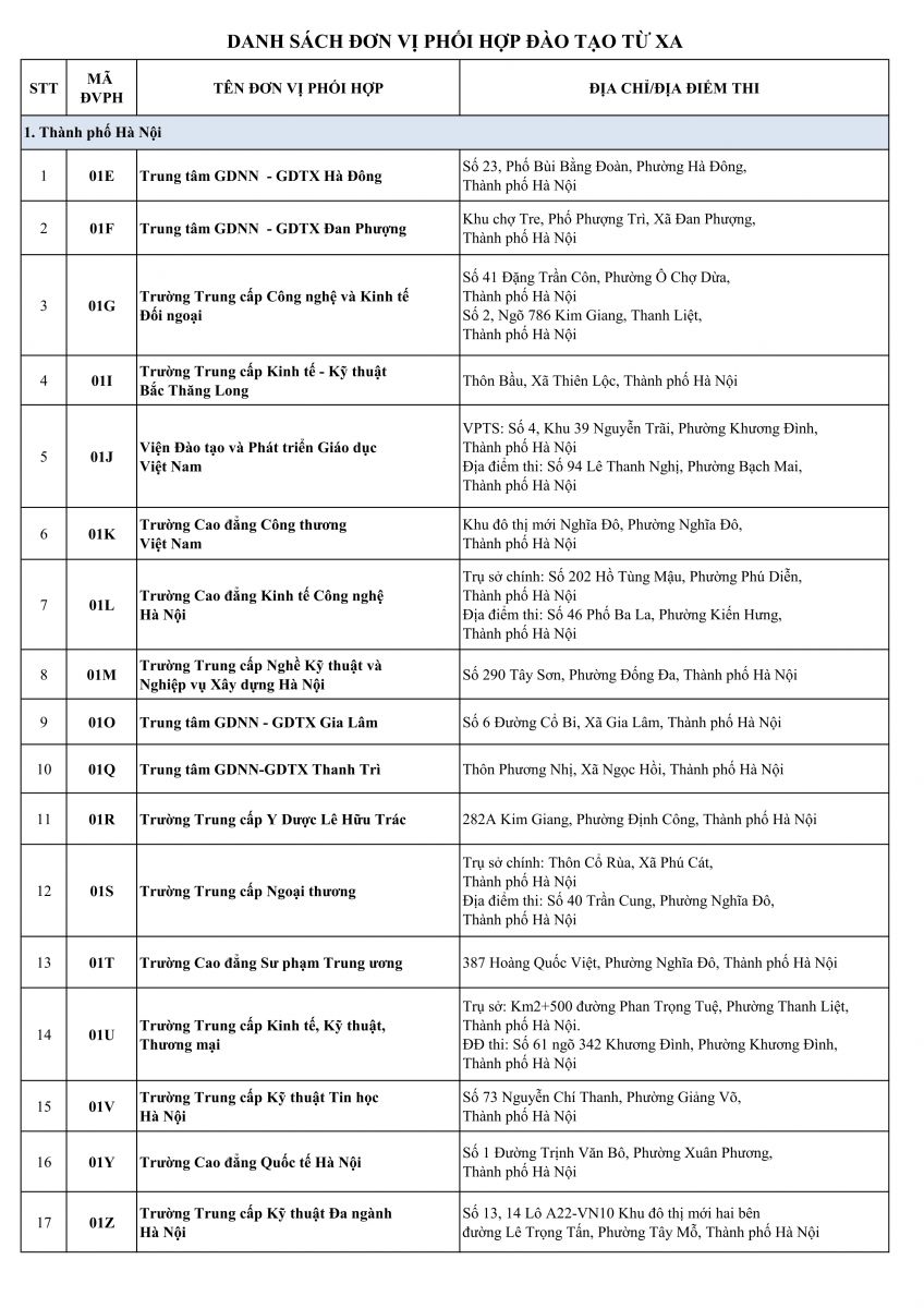 Danh sách các đơn vị phối hợp đào tạo từ xa năm 2025