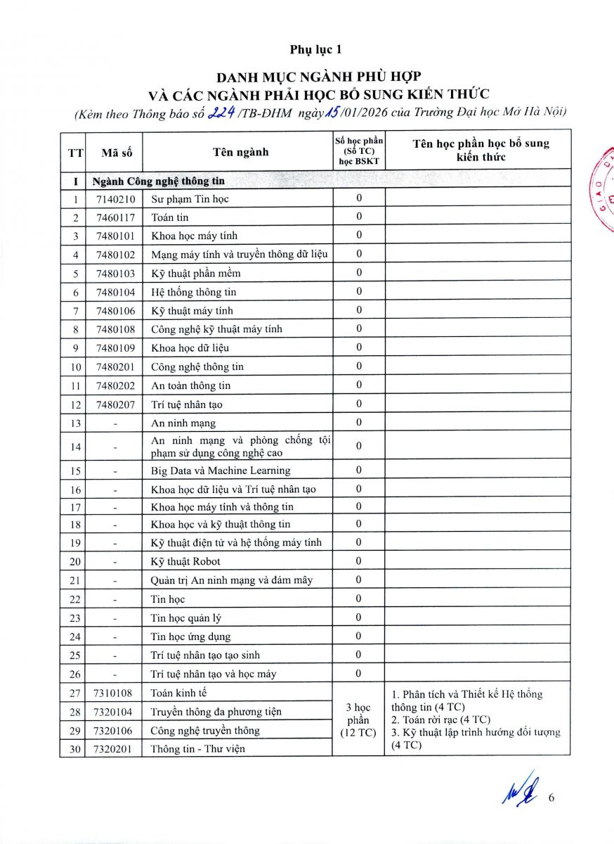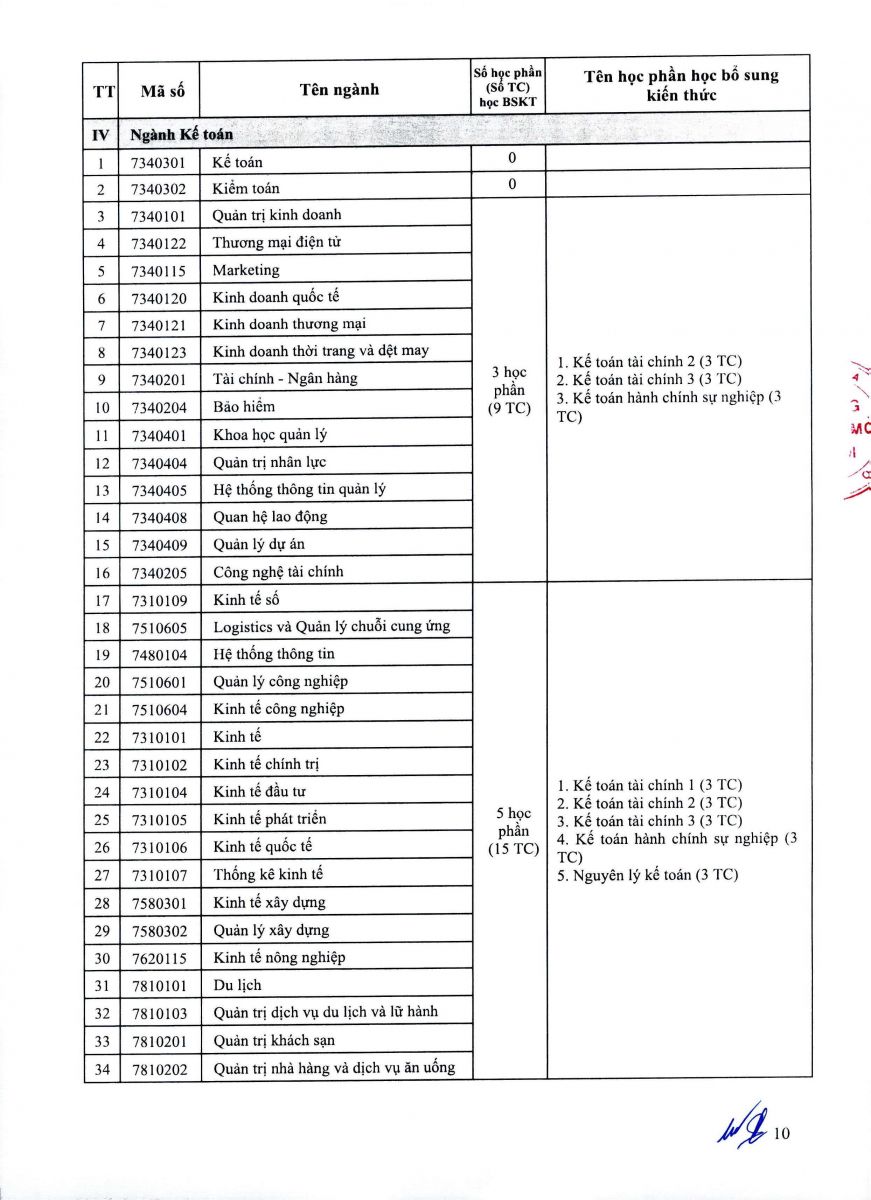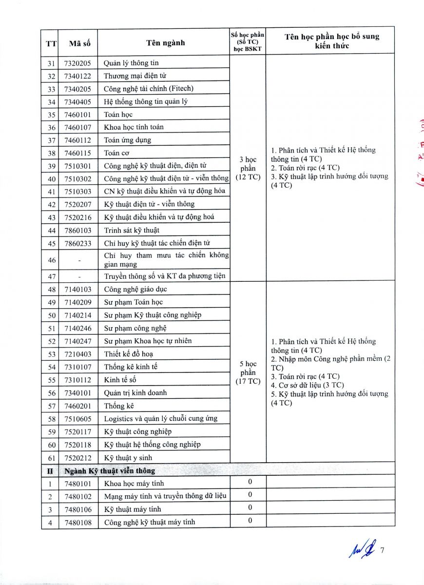 - Thí sinh có bằng tốt nghiệp đại học không nằm trong danh mục ngành phù hợp phải học bổ sung kiến thức (BSKT) ngành của chương trình đại học trước khi tham gia dự tuyển. Các học phần BSKT là các học phần trong chương trình đào tạo bậc đại học của ngành phù hợp với ngành thí sinh đăng ký dự tuyển đào tạo trình độ thạc sĩ. Tùy vào văn bằng đại học, chương trình đào tạo đã tích lũy, thí sinh phải học khối lượng các học phần BSKT cụ thể theo Danh mục ngành phù hợp quy định tại Phụ lục 1. Trường tổ chức mở các lớp học bổ sung kiến thức liên tục trong năm.