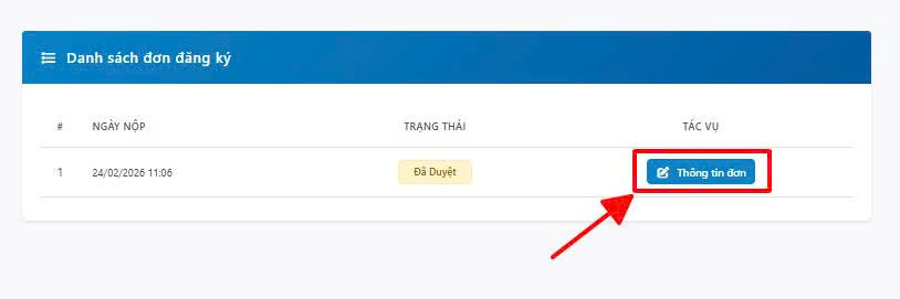 Thí sinh click vào tác vụ “Thông tin đơn” như hình dưới đây: